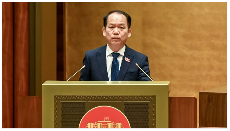 Bộ trưởng Tư pháp Hoàng Thanh Tùng trình bày Tờ trình sửa đổi, bổ sung một số điều của Luật Công chứng. (Ảnh: DUY LINH)