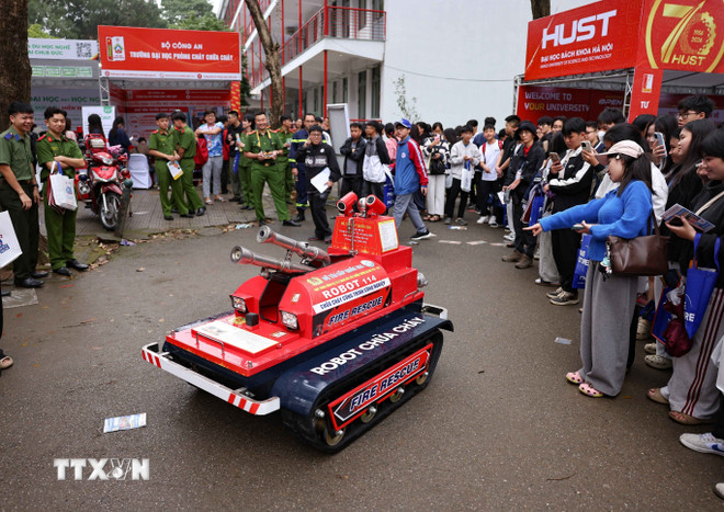 Nhiều sản phẩm ứng dụng khoa học công nghệ được giới thiệu trong Ngày hội tư vấn tuyển sinh-hướng nghiệp 2026. (Ảnh: Thanh Tùng/TTXVN)