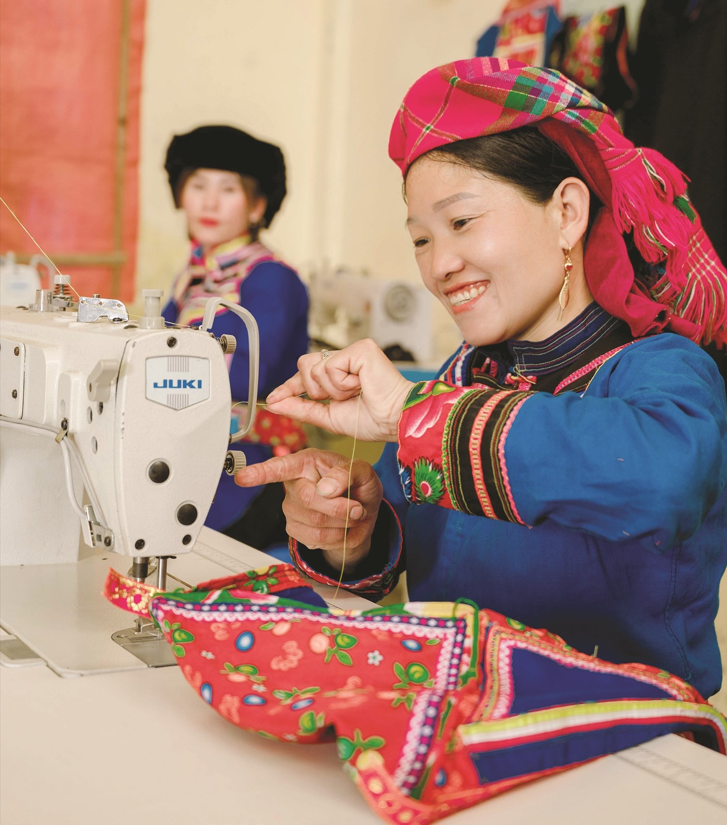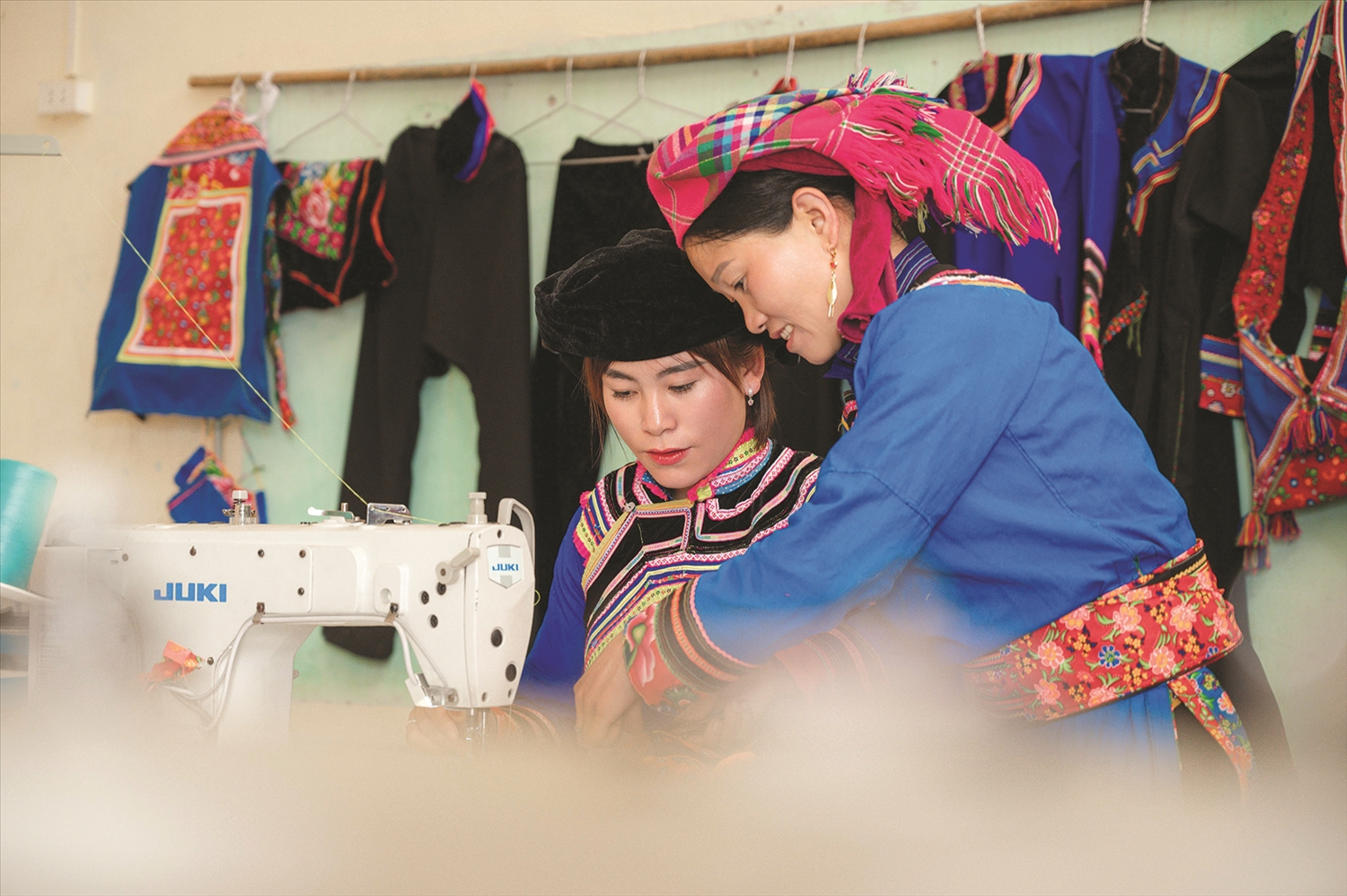 Tôi chăm chú lắng nghe ông Trần Chí Nhân, Phó trưởng Phòng Văn hóa - Thông tin huyện Hoàng Su Phì kể và mường tượng lại niềm vui của Tà Chải trong những ngày đầu thành lập Nhóm cộng đồng. Tám chiếc máy may điện tử Juki DDL-900A, hai chiếc máy thêu Brother GS-2700, cùng bàn là, cùng chỉ may, chỉ thêu, phấn màu, thước gỗ, thước dây... được ba chiếc xe tải từ miền xuôi, hăm hở nối đuôi nhau chở lên Tà Chải.